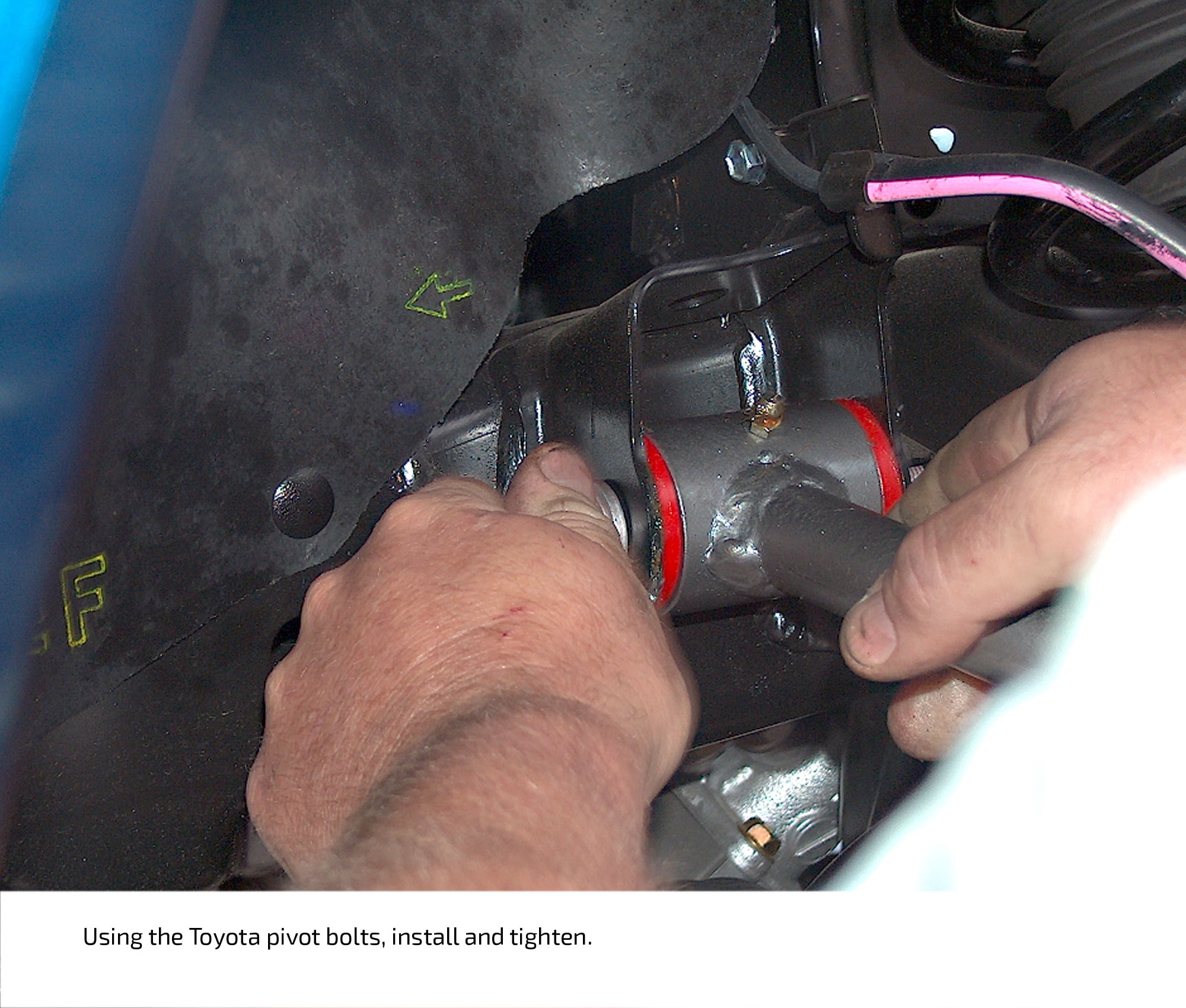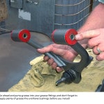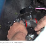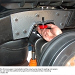 Installing the new DJM drop kit for the Tacoma requires some effort. The DJM engineering staff demonstrated the installation for us on a brand-new, rich blue ’06 Tacoma extended cab. The accompanying photos cover just about every detail of the installation.