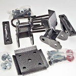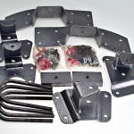 In some rear kits there is a flip kit which moves the rear axle from below the leaf spring to the top of the leaf spring, and often will lower your truck too much by itself. So DJM includes leaf spring shackles and or hangers which lift the truck to the designed ride height. In many cases the lifting shackles will allow you several positions to set the ride height at, a very handy thing, especially with all the different wheel and tire combo’s in the world