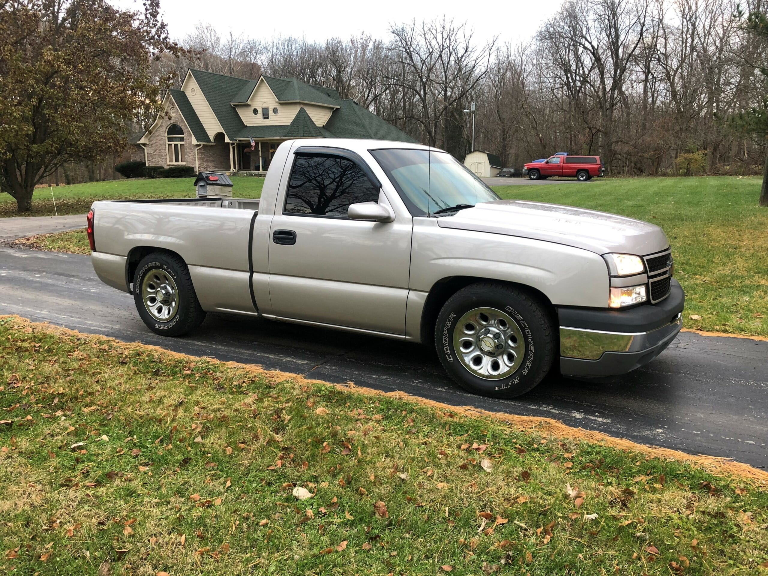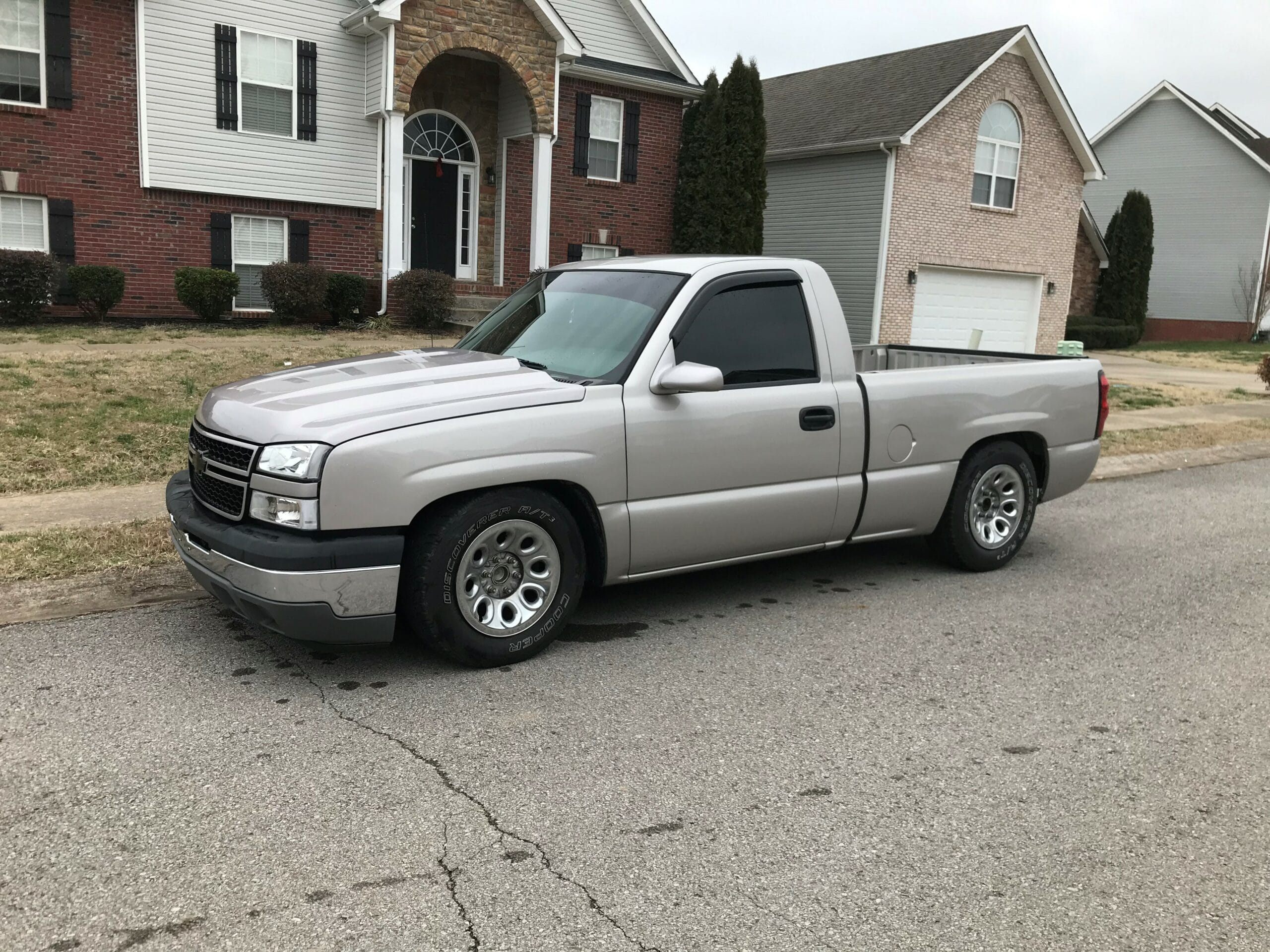 Lower control arms are used with the factory spring to drop the front 4 inches and a rear axle flip kit with frame supports gets you 6 inch drop in the rear. The upper control arms, which help correct alignment angles, include urethane bushings, pivot sleeves, and new ball joints.